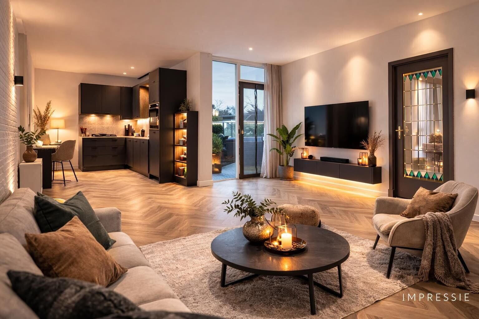 De woonkamer is heerlijk licht dankzij de raampartijen en vormt het hart van de woning. De ruimte staat in open verbinding met de keuken, waardoor een fijne en open leefomgeving ontstaat. Hier creëer je met relatief eenvoudige aanpassingen een eigentijdse woonkeuken waar je kunt koken, tafelen en ontspannen. Vanuit de woonkamer stap je zo het balkon op, gelegen op het noordoosten, een prettige plek om de dag te beginnen met een kop koffie of juist even tot rust te komen na een werkdag.